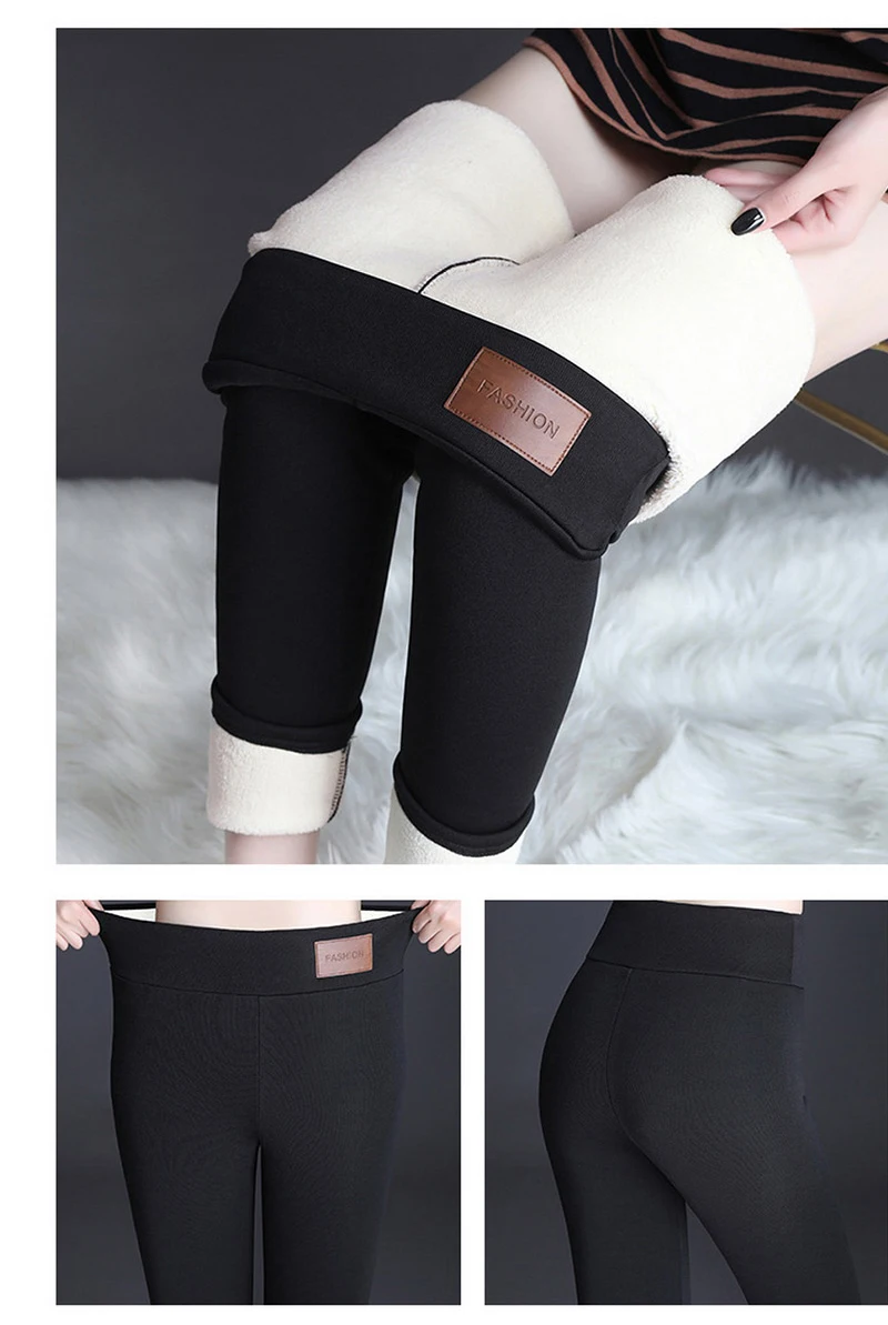 Women Winter Thick Velvet Wool Pants High Waist Hit Underpant Stretch Slim Trouser Cashmere Pencil