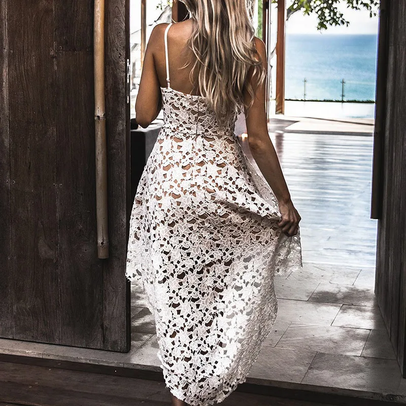 2020 spitze Sommer Kleid Sexy Cocktail Party Kleid Boho V-ausschnitt High Low Böhmischen Little White Kleid Süße Elegante Kleid HP-1002