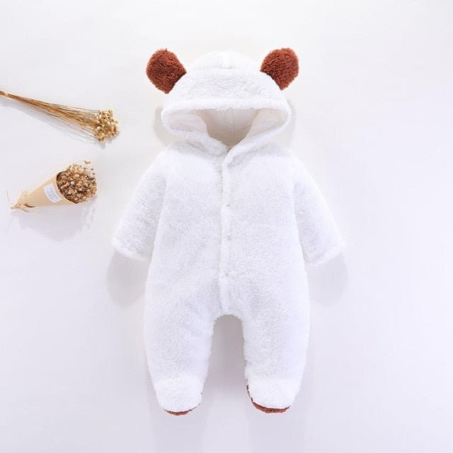 Unisex Baby Rompers Boys Girls Fleece Hooded Winter Fleece Jumpsuit Soft Cute Cartoon Coats Newborn Infant Bodysuits