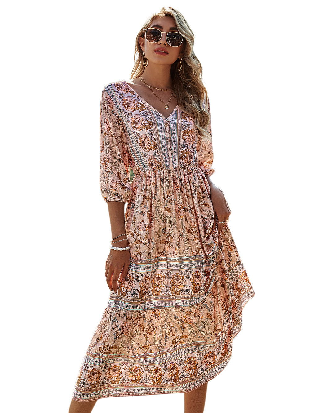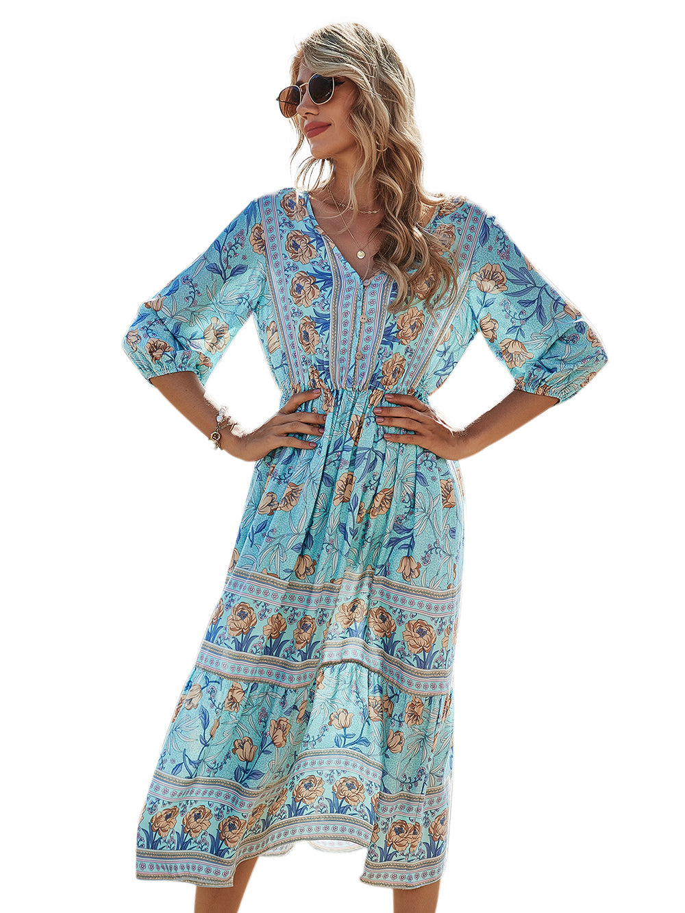 2021 boho plus size beach floral rayon summer autumn dresses bohemian girl chic v neck long sleeve casual maxi dress
