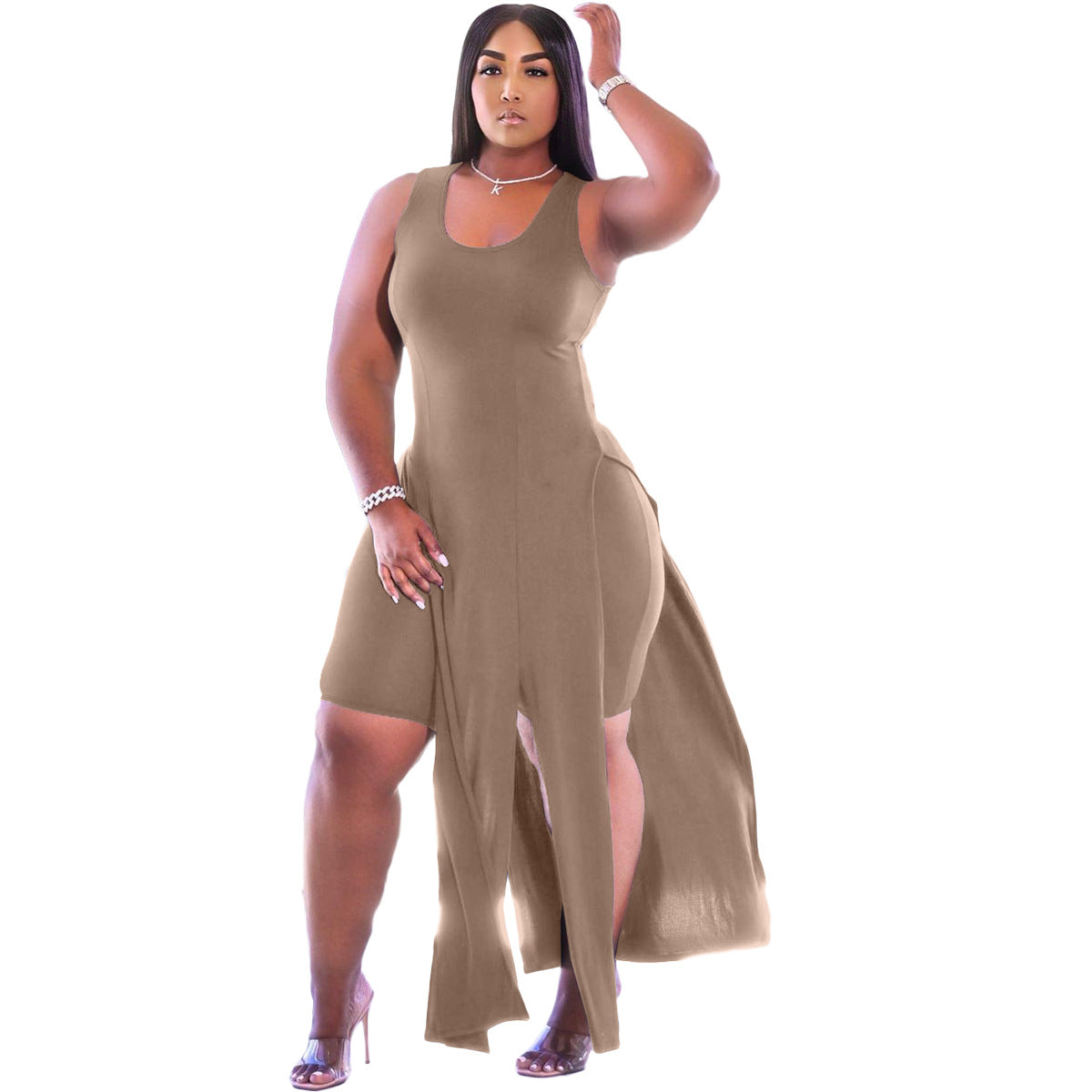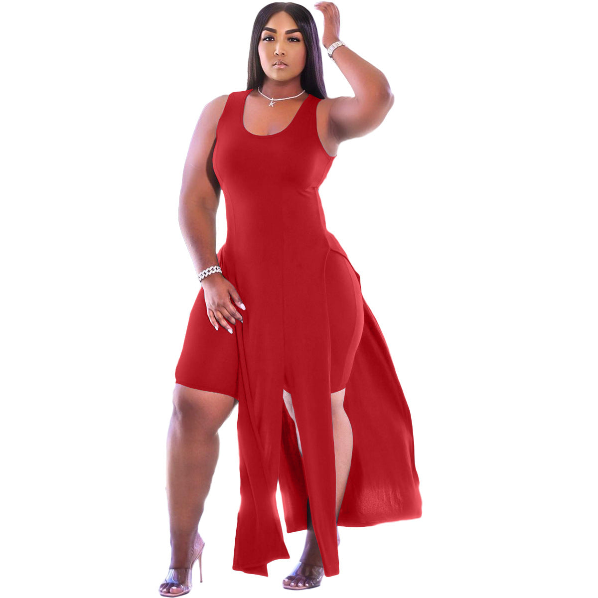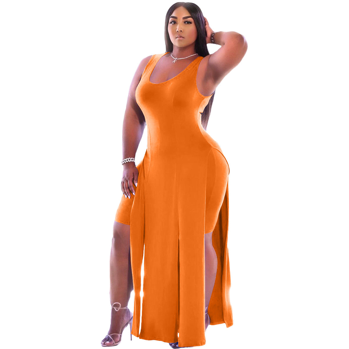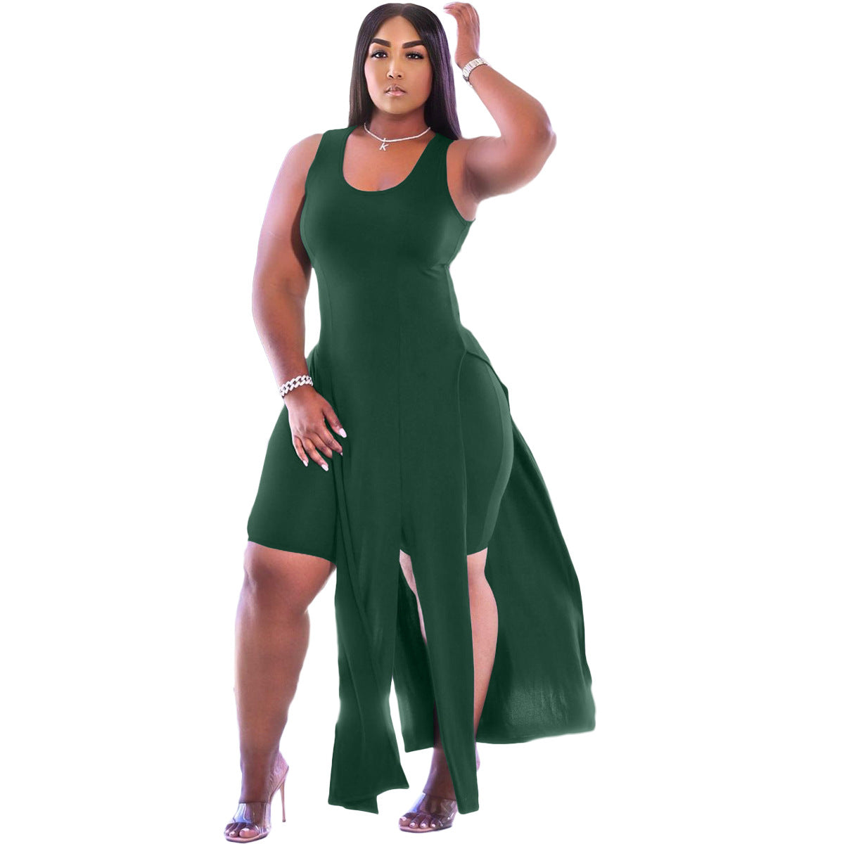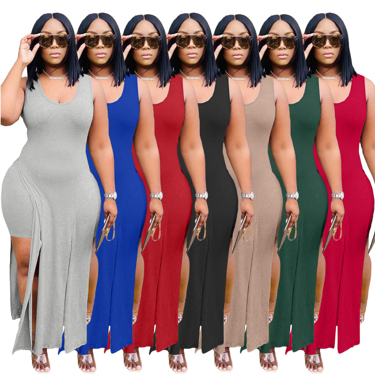 2021 wholesale Summer Long Dress For Woman Solid Color Irregular Hem Split Bodycon Casual Maxi Dress