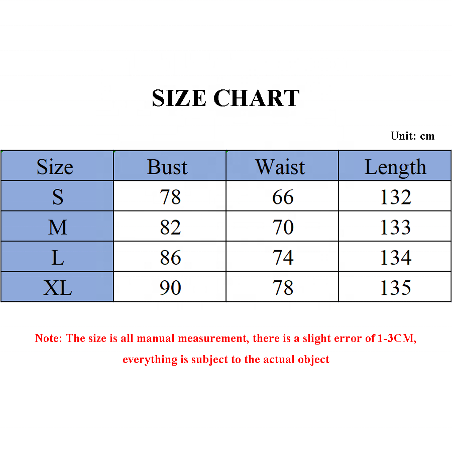 There maybe 1-3 cm deviation in different sizes, locations and stretch of fabrics. Size chart is for reference only, there maybe a little difference with what you get.