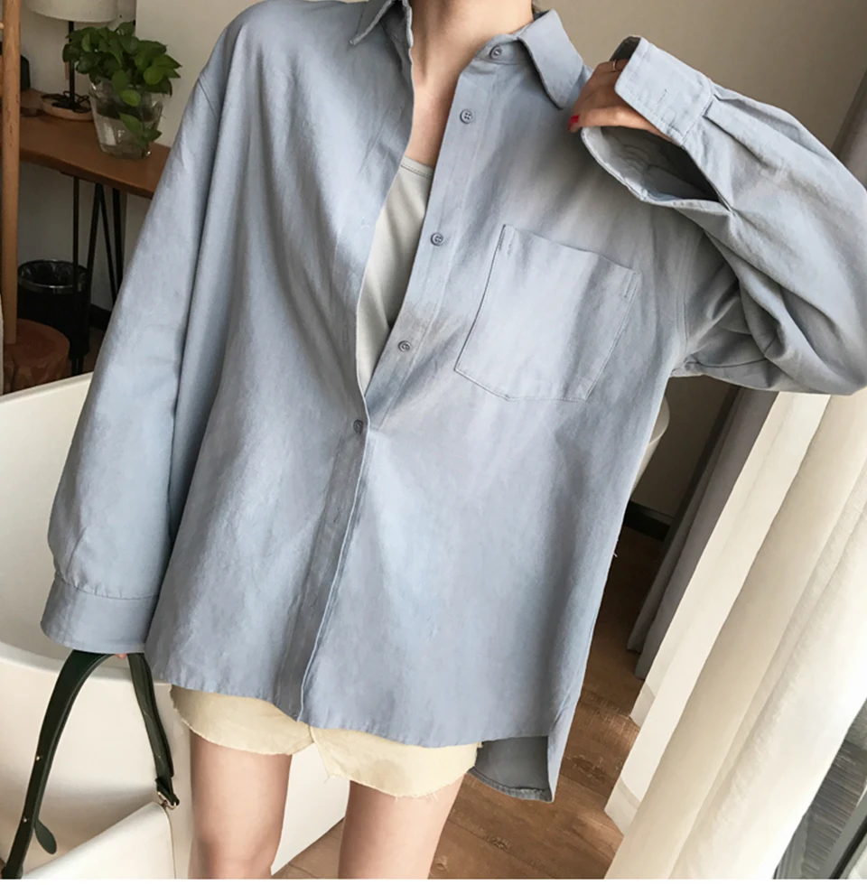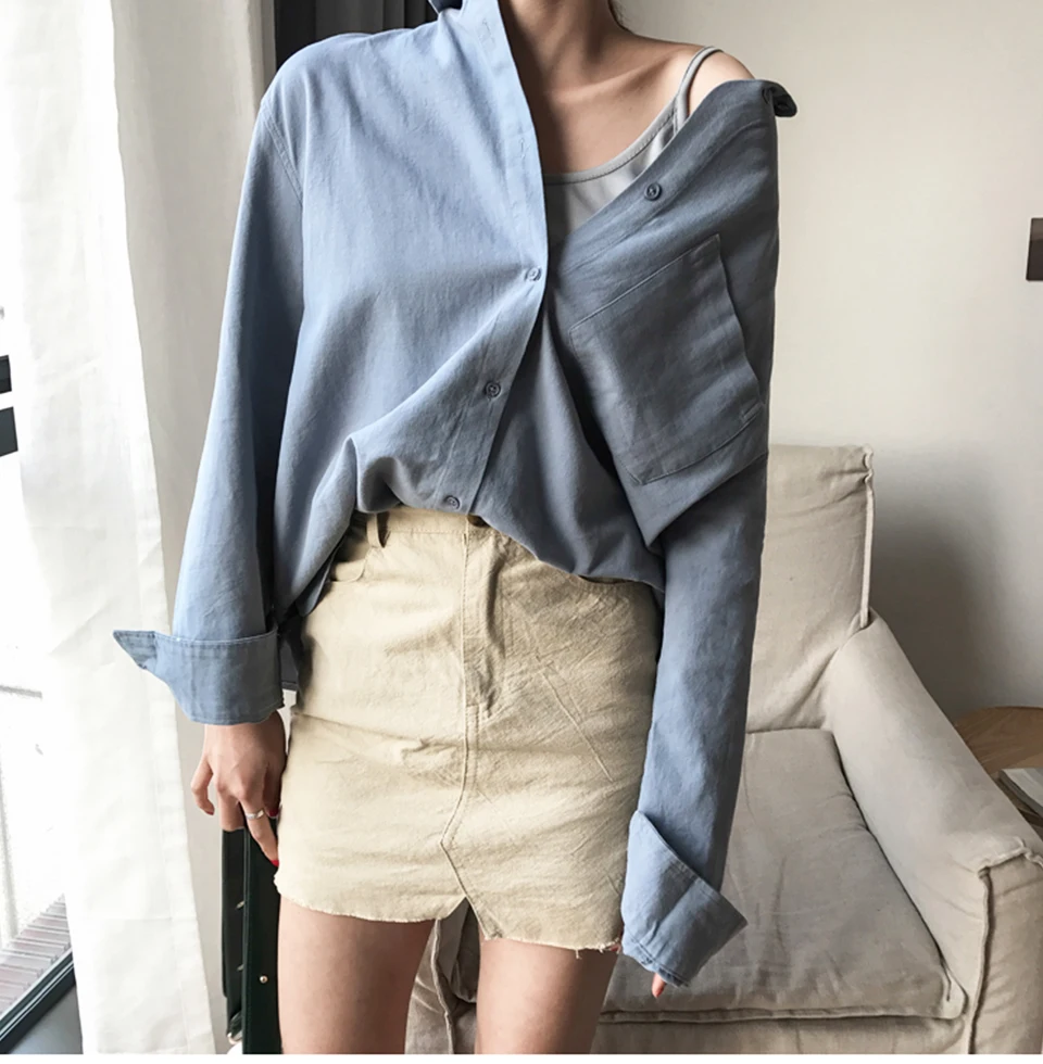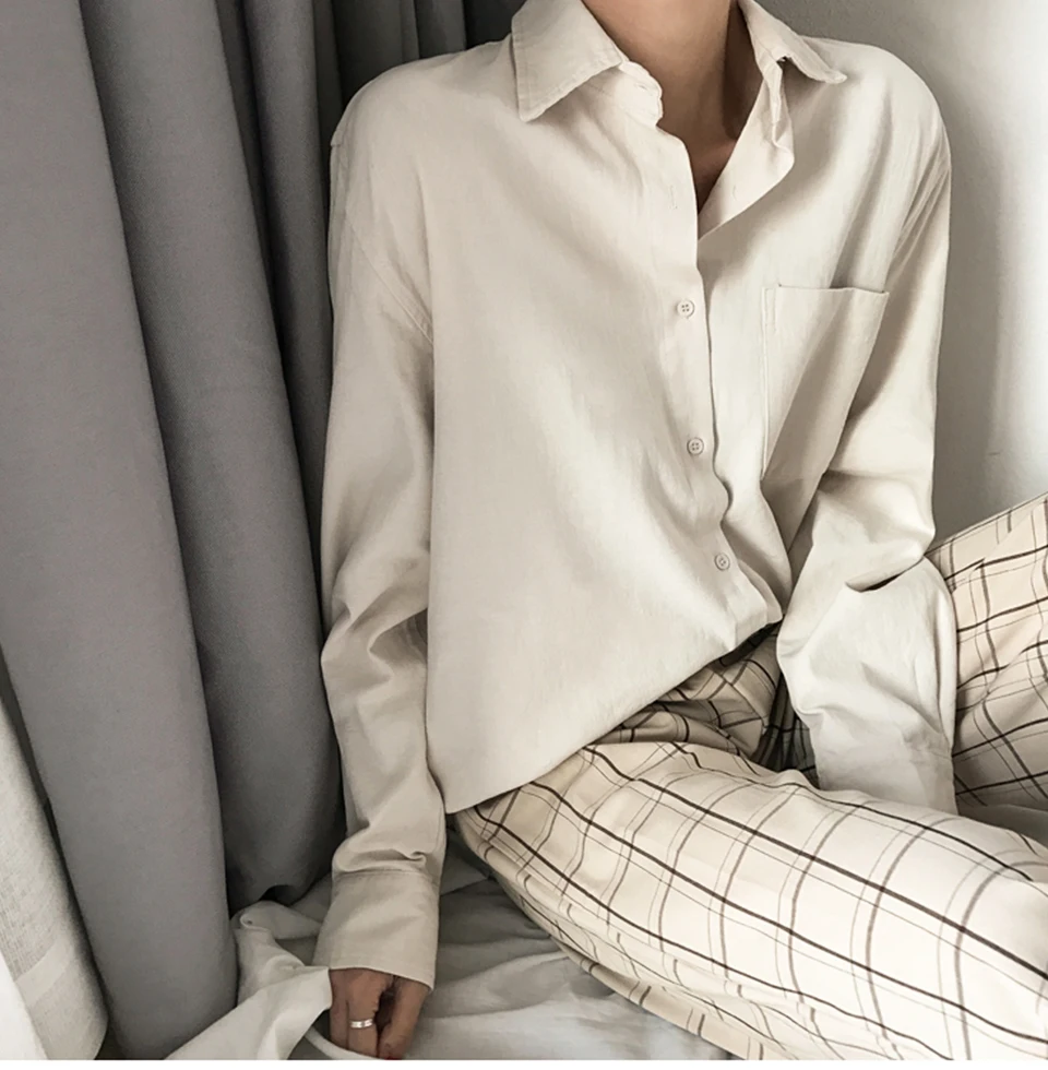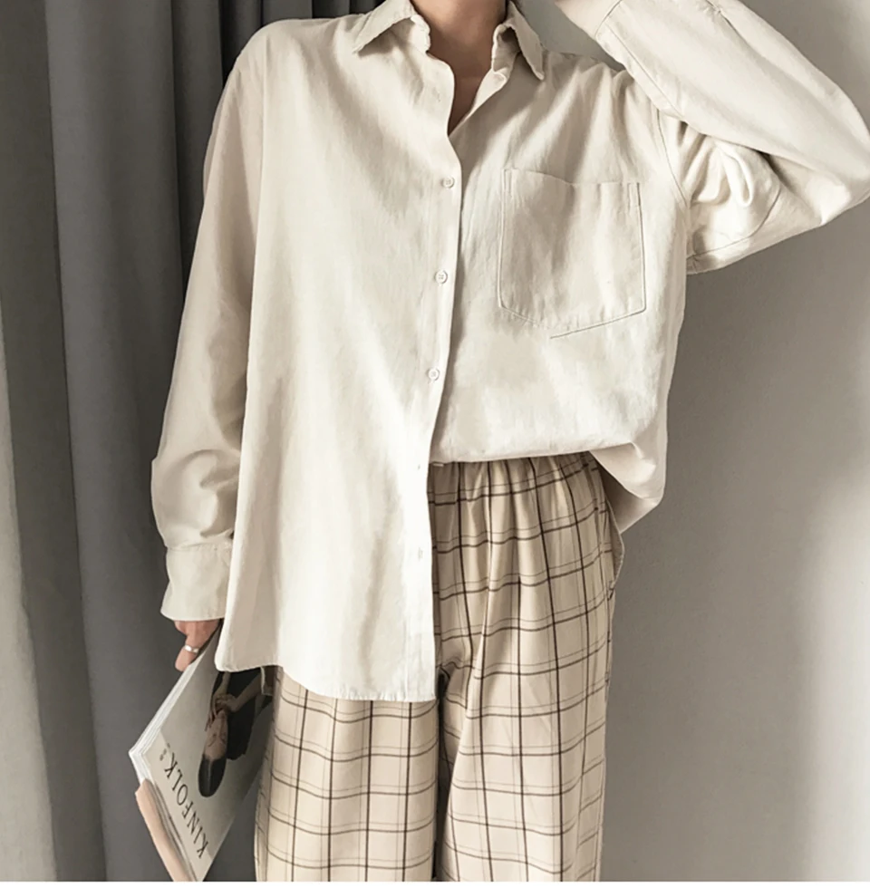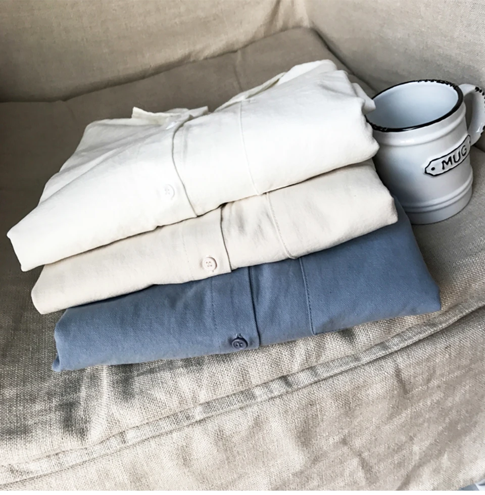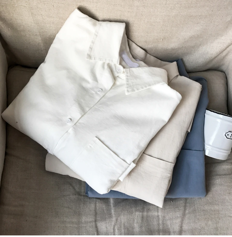 Cotton Blouse Women Summer Shirt Spring Long Sleeve Beige Blue White Blouse Casual Tops Ladies Shirt Streetwear Z085 - goldylify.com