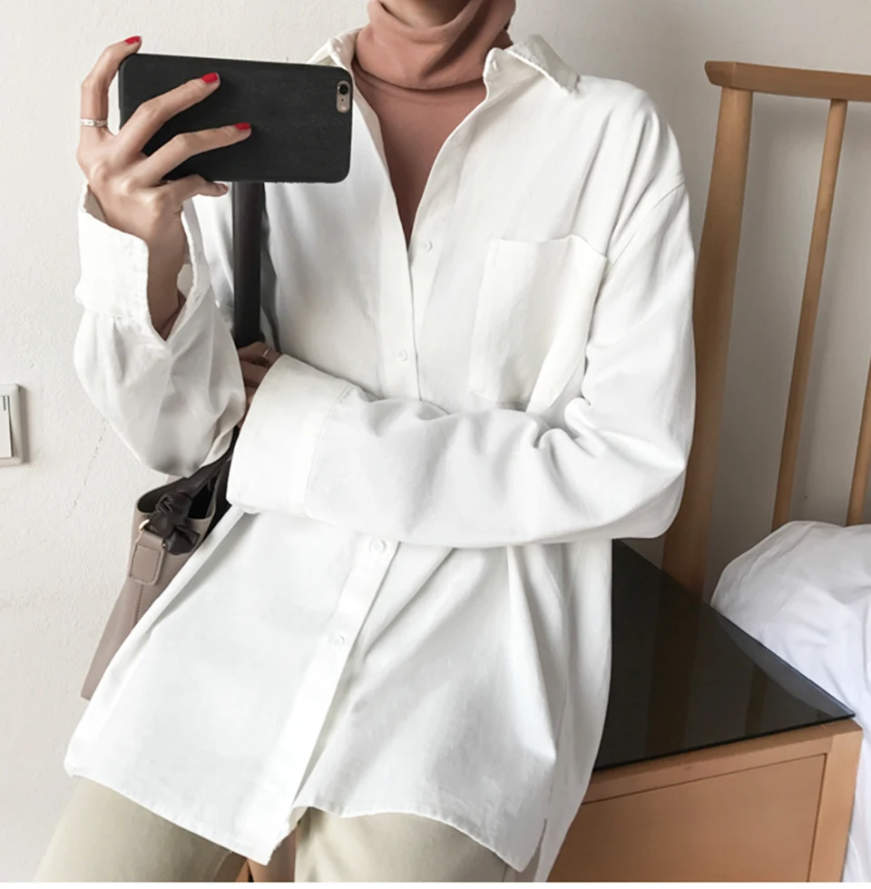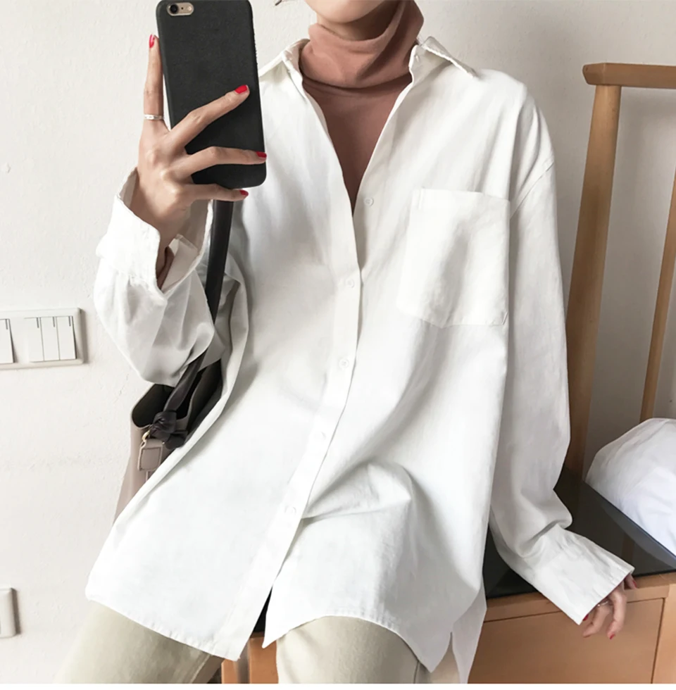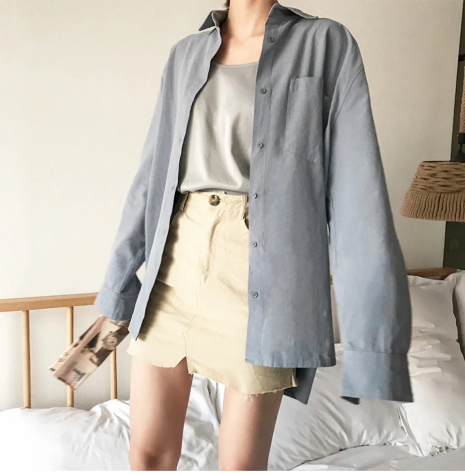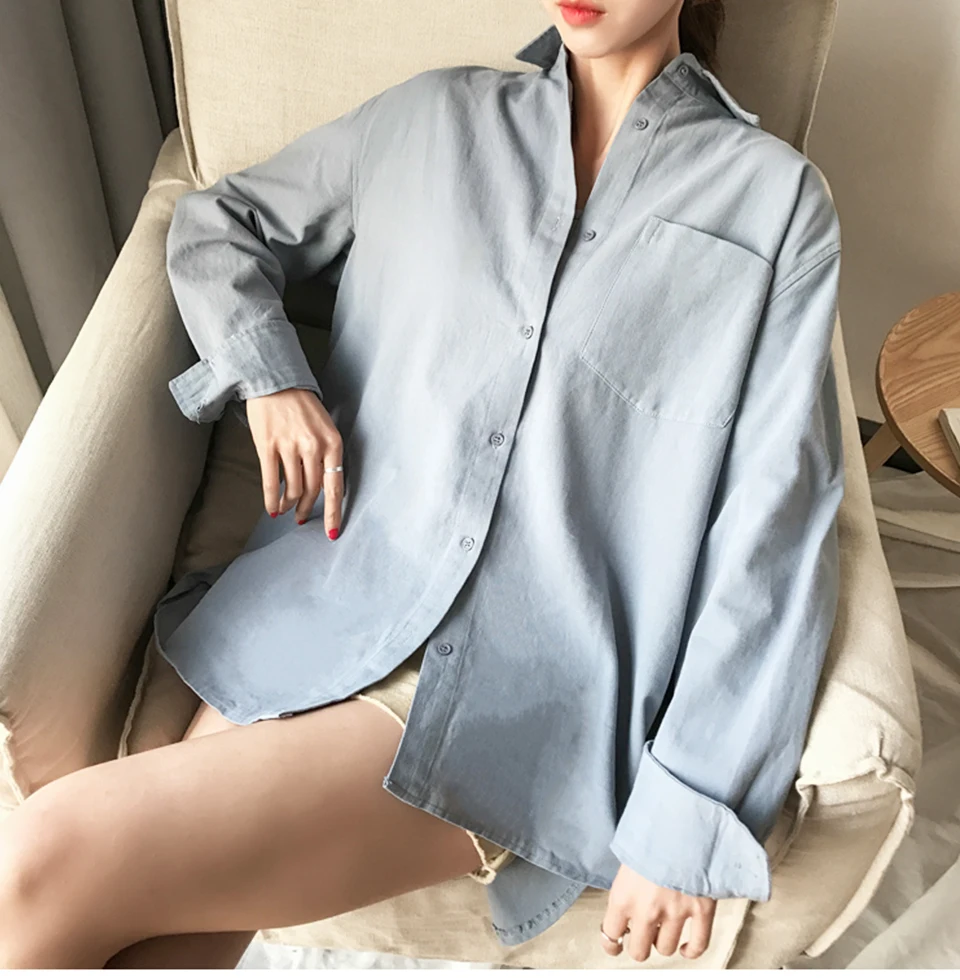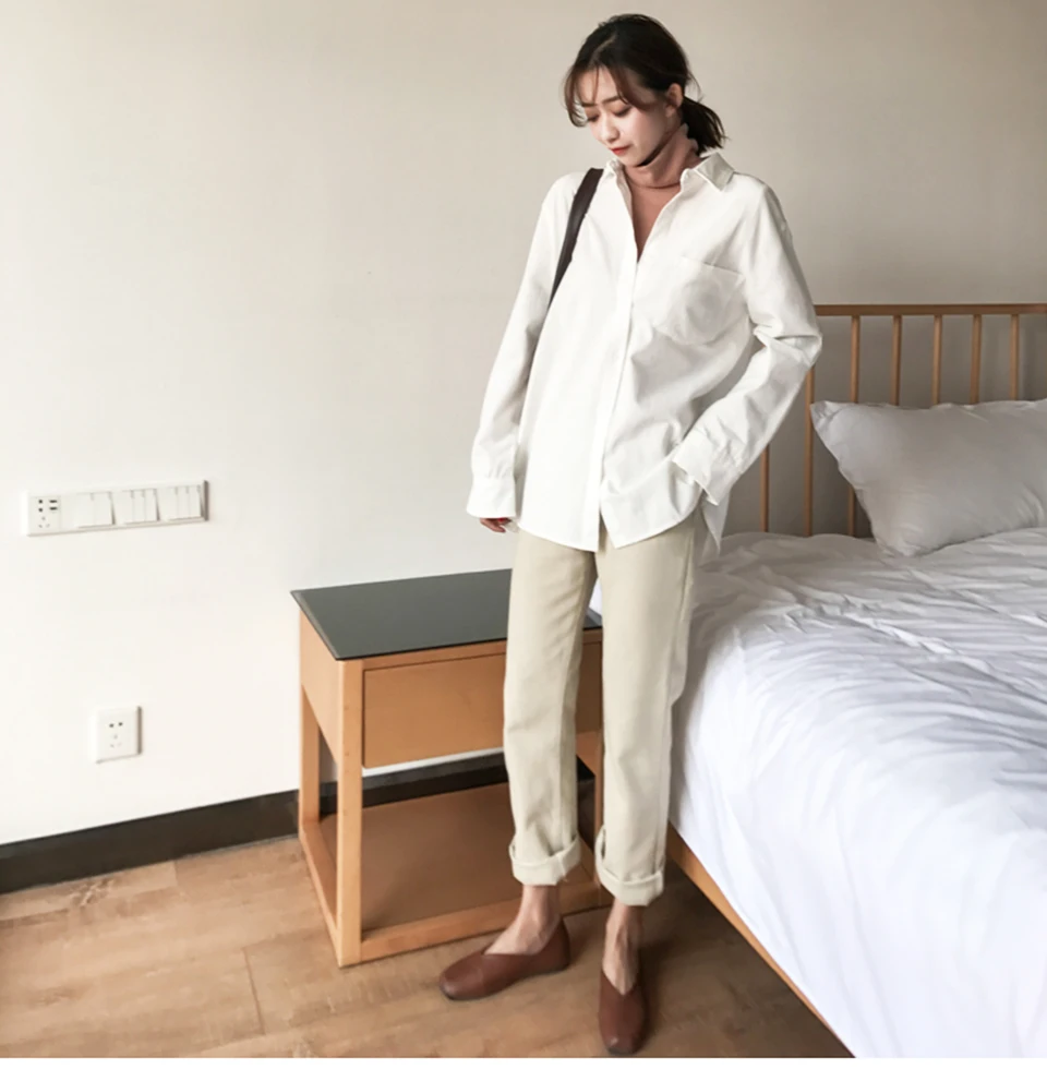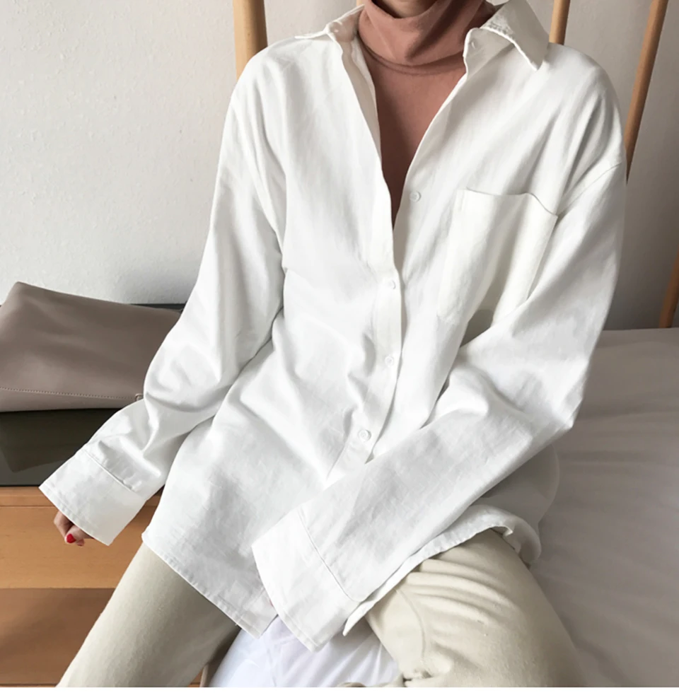 Cotton Blouse Women Summer Shirt Spring Long Sleeve Beige Blue White Blouse Casual Tops Ladies Shirt Streetwear Z085 - goldylify.com