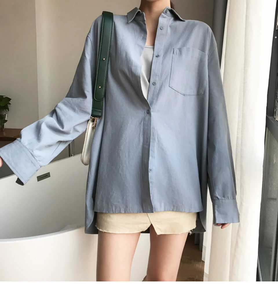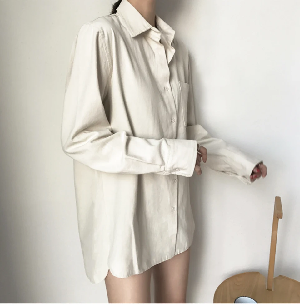 Cotton Blouse Women Summer Shirt Spring Long Sleeve Beige Blue White Blouse Casual Tops Ladies Shirt Streetwear Z085
