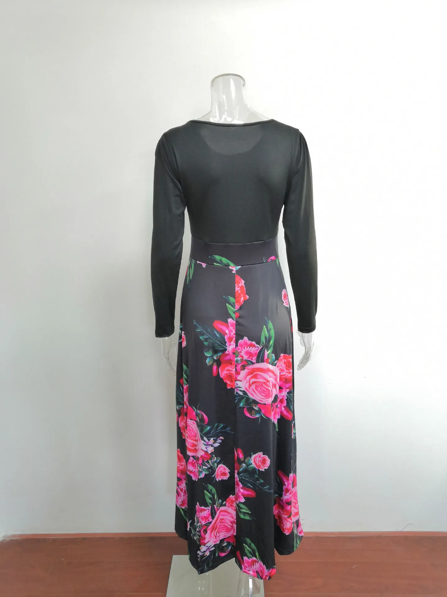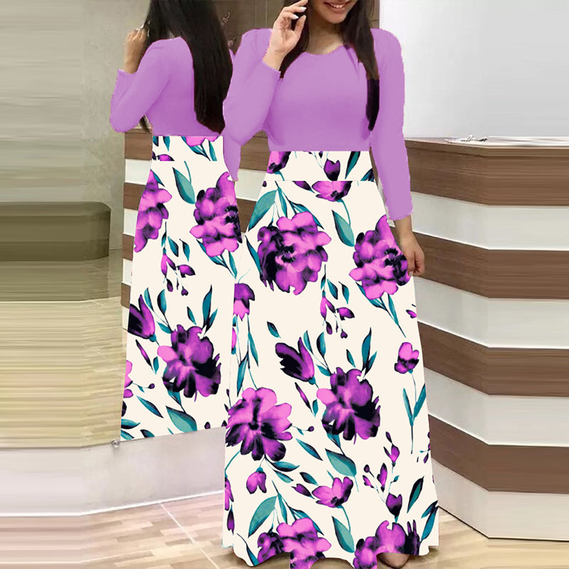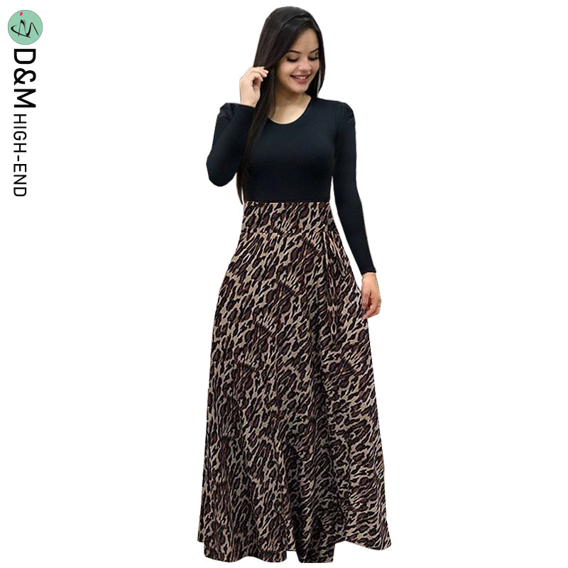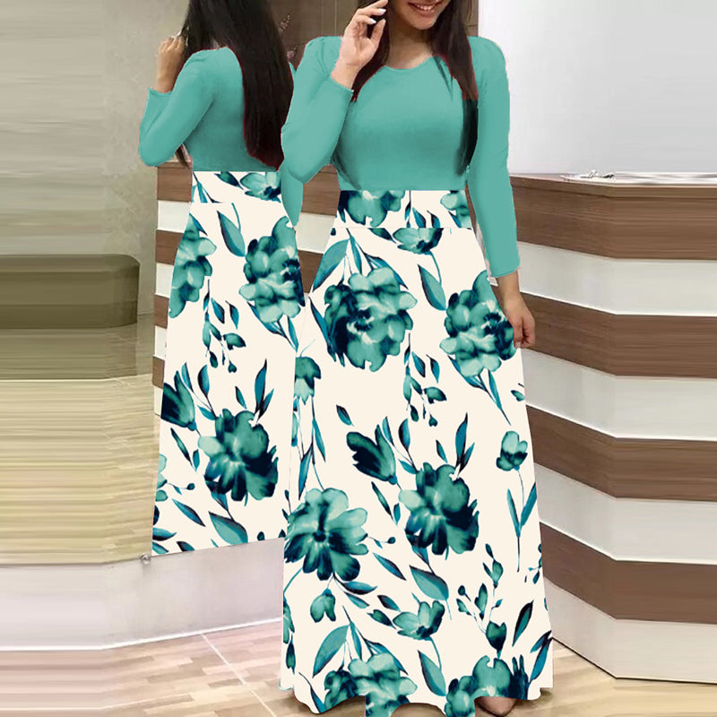 D&M Spring Autumn Ladies Casual Ankle-Length Vestido Women Muslim Dress Female Fashion Long Sleeve Floral Print Long Maxi Dress