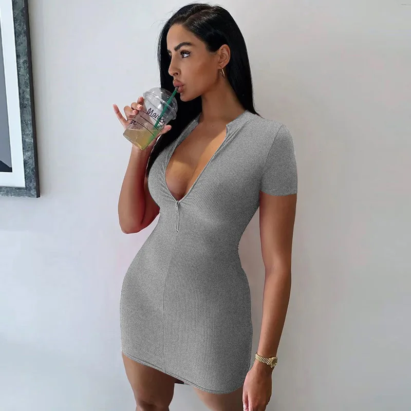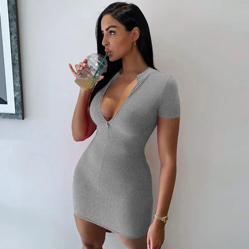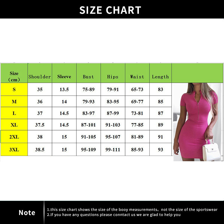 dresses women Fashion Style Solid color Short Sleeve Bodycon Dress Zipper summer dresses women casual