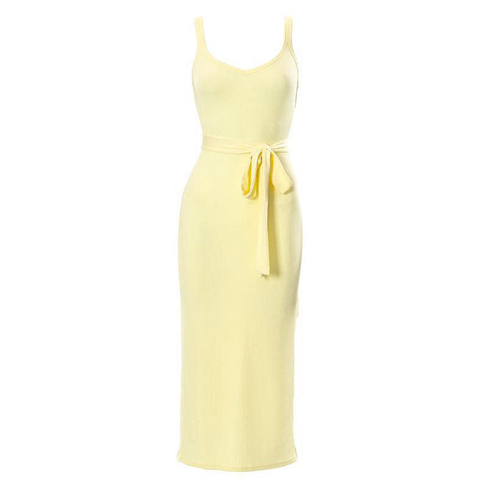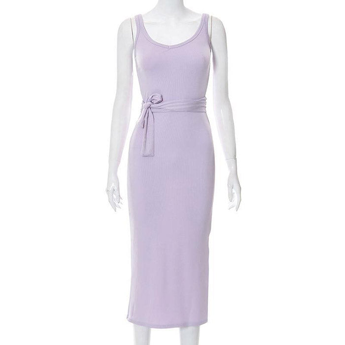 Dropshipping 2022 summer new women solid color sling split lace dress ladies long party dress
