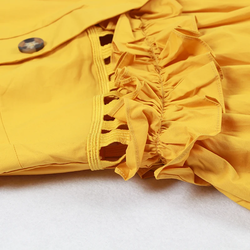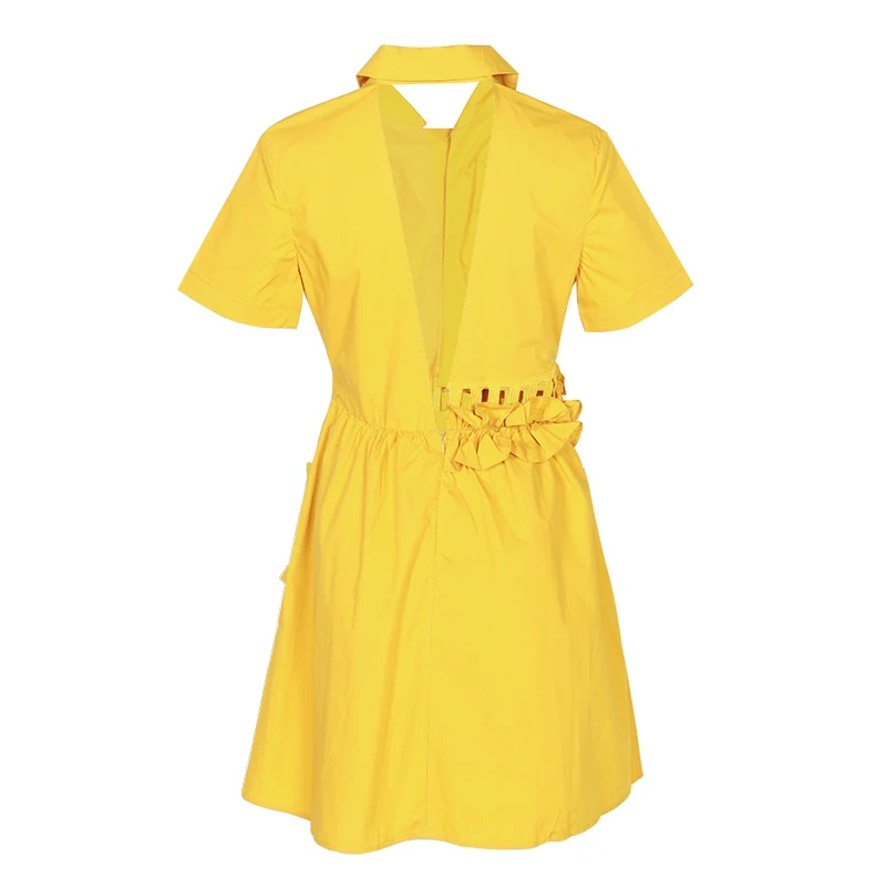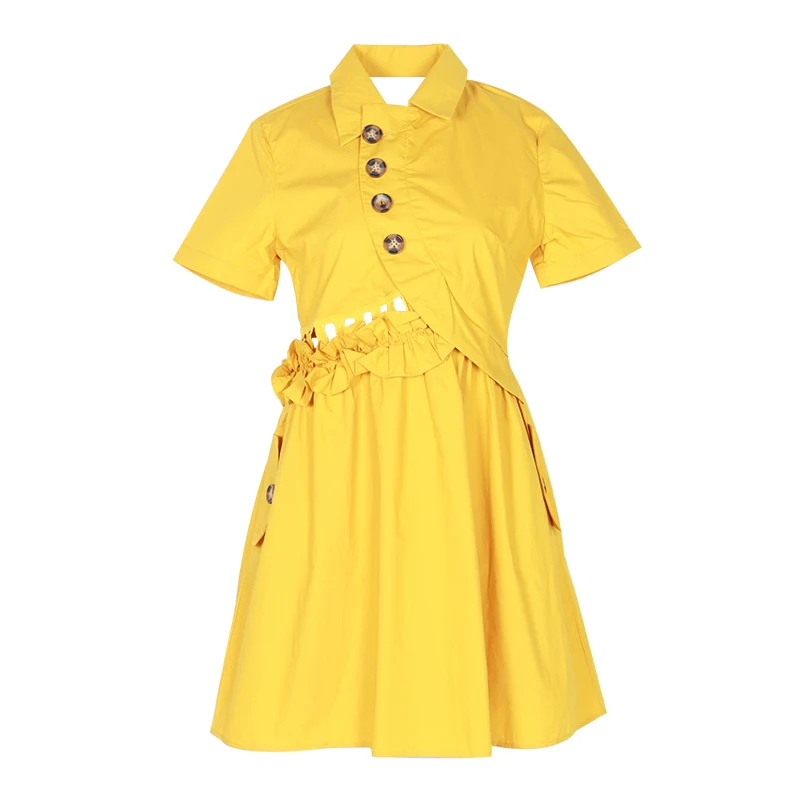 TWOTWINSTYLE Elegant Solid Women Dress Lapel Short Sleeve High Waist Button Ruffles Slim Mini Dresses Female Fashion Summer 2019 - goldylify.com