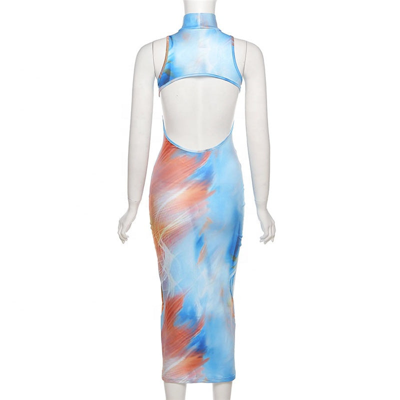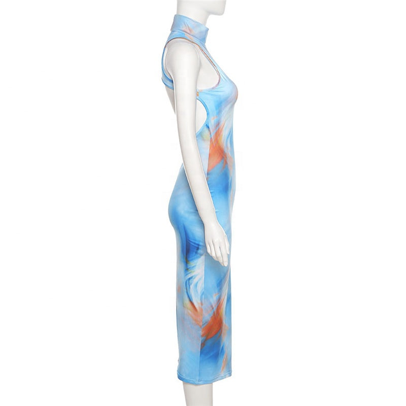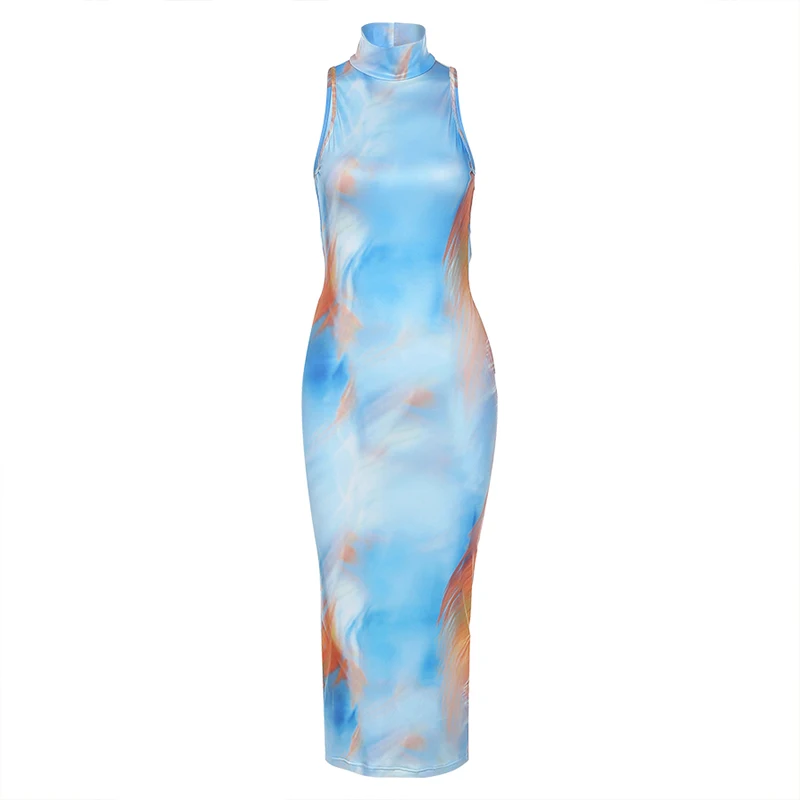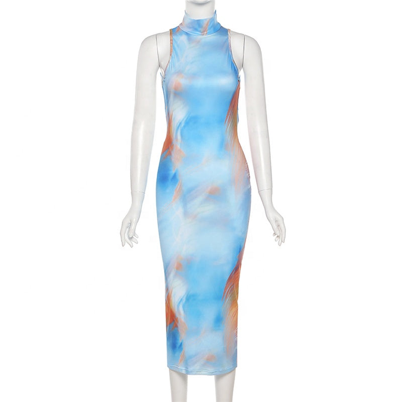 KKbeier BR21A045 Fashion Design Trend Sleeveless Colorful Print Party Maxi Casual Dress for Girl