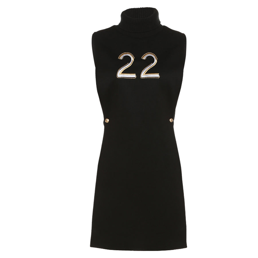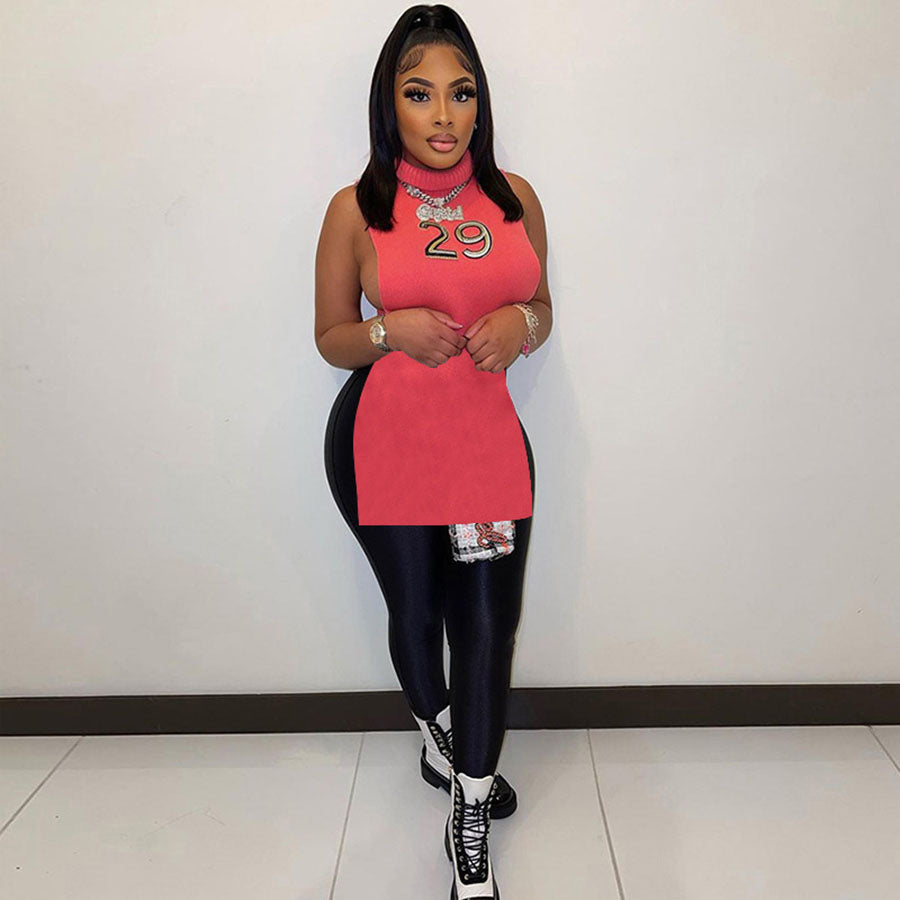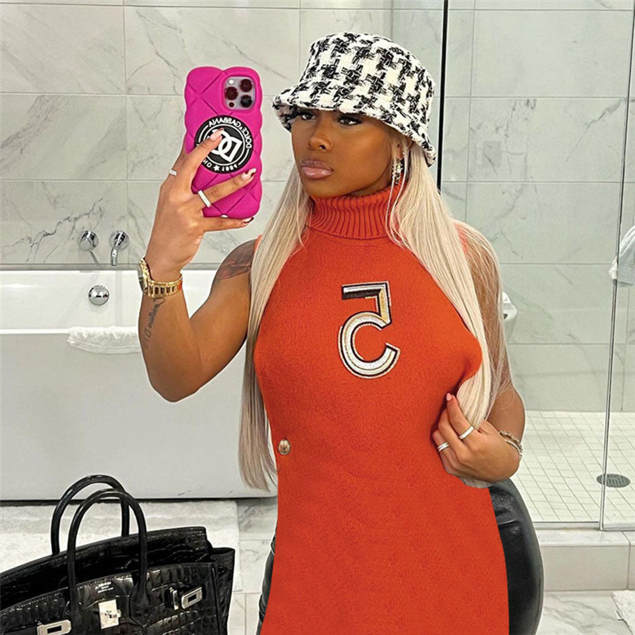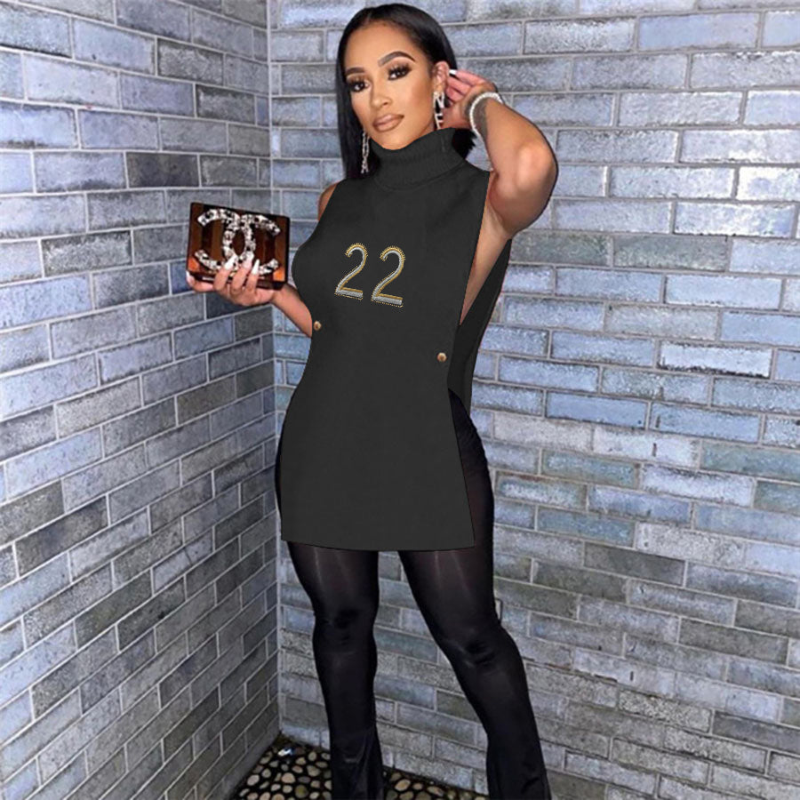 Kliou K21D11411 Fashion new women's street dress Y2K Style Turtleneck Sleeveless Loose Side Slit dresses