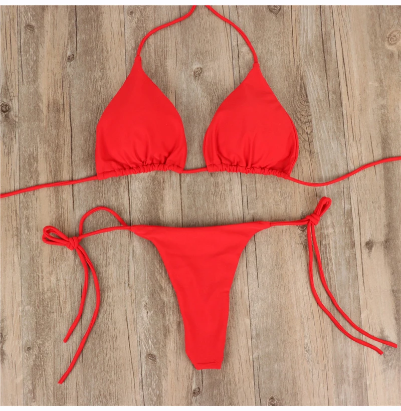 Lossky Sexy Beach Bathing Suit Bikini Set String Split Two-piece Swimsuit Separate Triangle Push Up Bra Cup Women Halter Bandage - goldylify.com