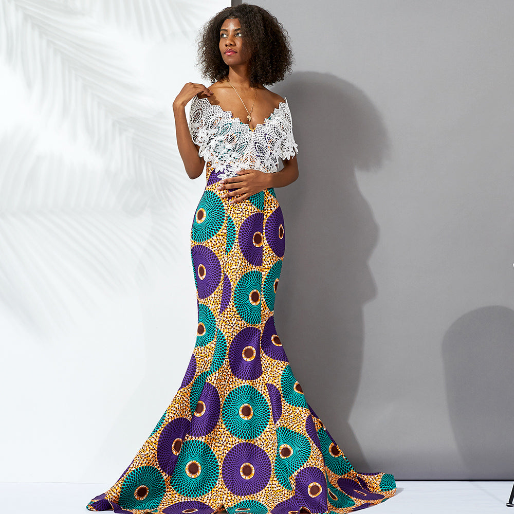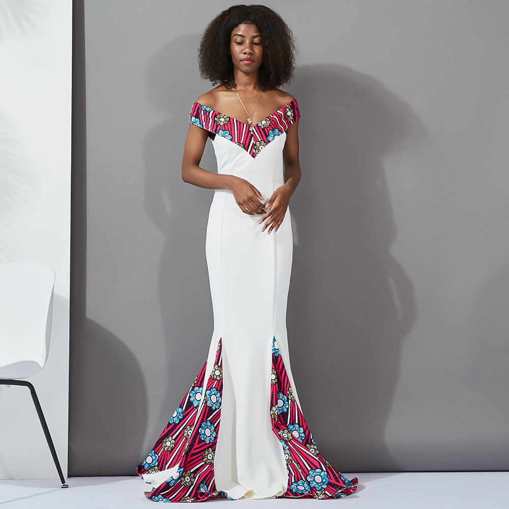 Luxury Africa Clothing Fashion Printing Modest Elegant Kitenge Dress Designs African Women Wedding Evening Dresses