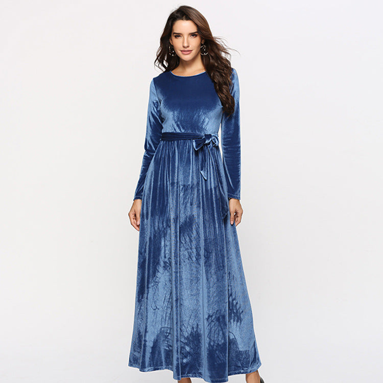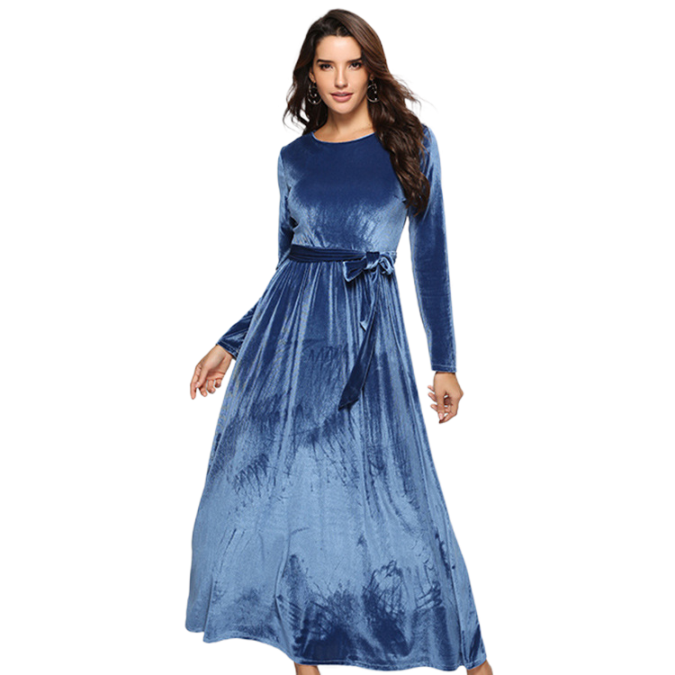 New Women Long Party Dress Plain O-neck Evening Velvet Dresses Maxi Ladies Evening Dress