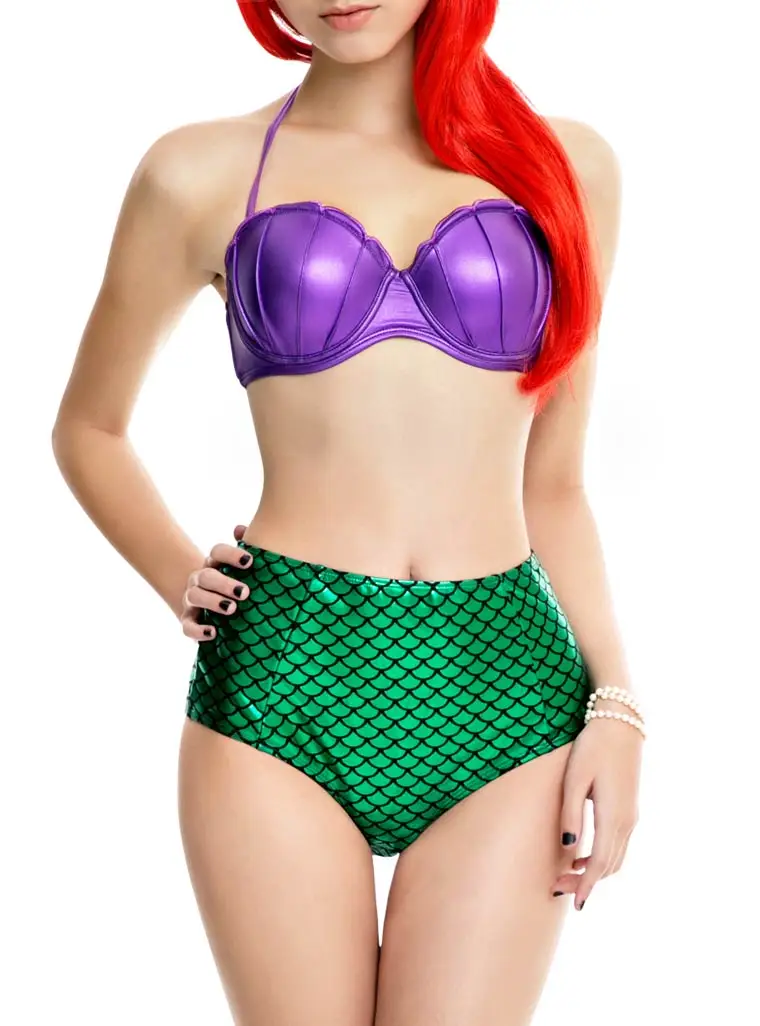New Women Mermaid Bikini Set Swimwear Bandeau Push-Up Shell Bra Swimsuit Sexy High Waist Beachwear