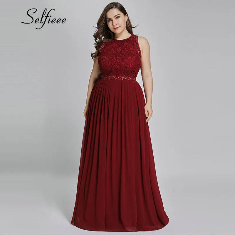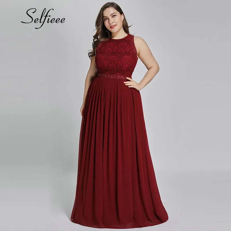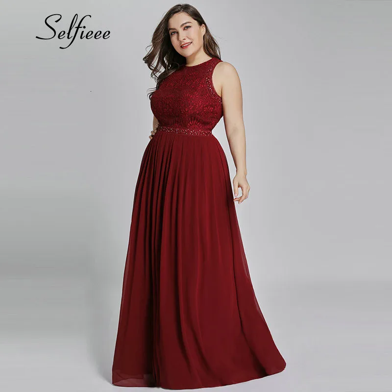Plus Größe Maxi Kleid Elegante EINE Linie O Neck Sleeveless Spitze Sommer Strand Kleid Burgund Lange Party Kleider Frauen Abend formale