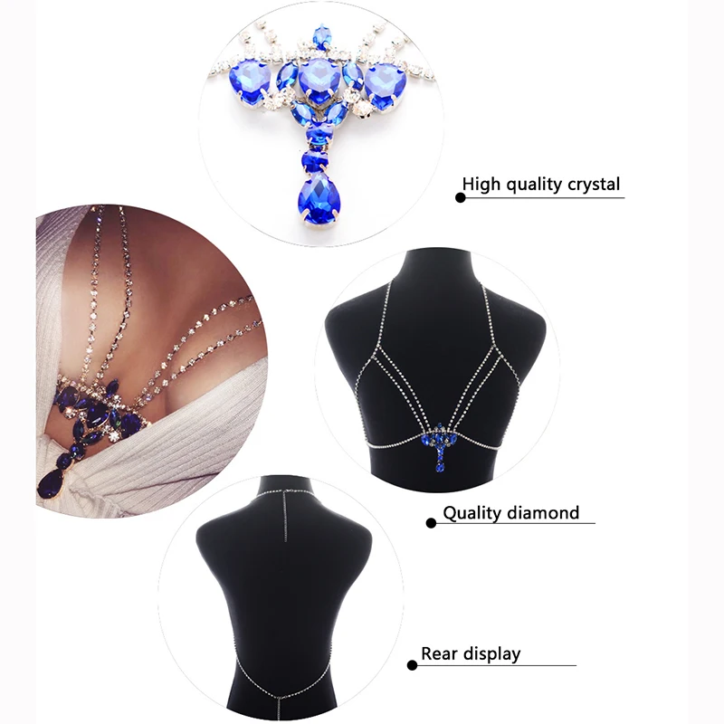 Punk Popular Shiny Crystal Halter Bikini Beach Women Charm Sexy Nightclub Low-cut Jewelry Accessories Girlfriend Gift