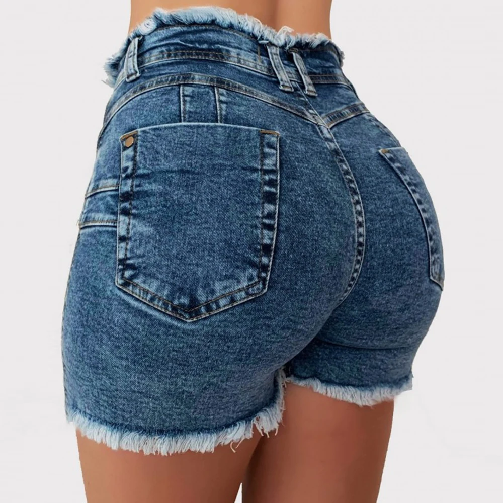 Sommer Shinny Jeans Shorts Weibliche Casual Tasche Löcher Denim Hosen Shorts Mode Licht Blau Hohe Taille Jeans Für Frauen D30