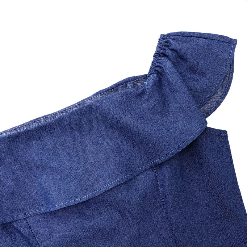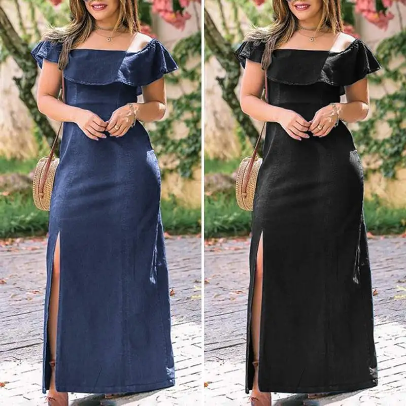 Demin Kleid Plus Größe Frauen Sommer Sommerkleid Vintage Rüsche Hülse Böhmischen Lange Kleid Casual Robe Split Party Sommerkleid