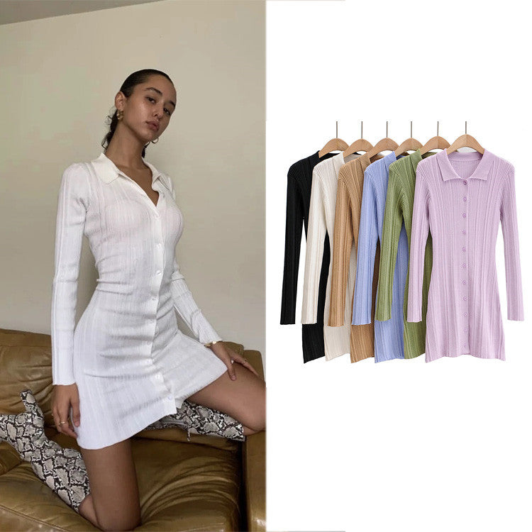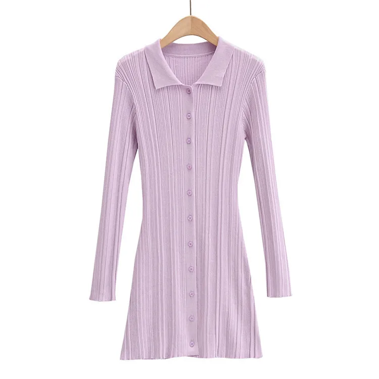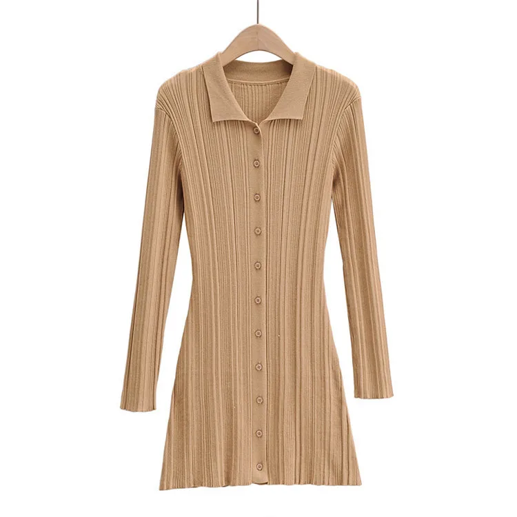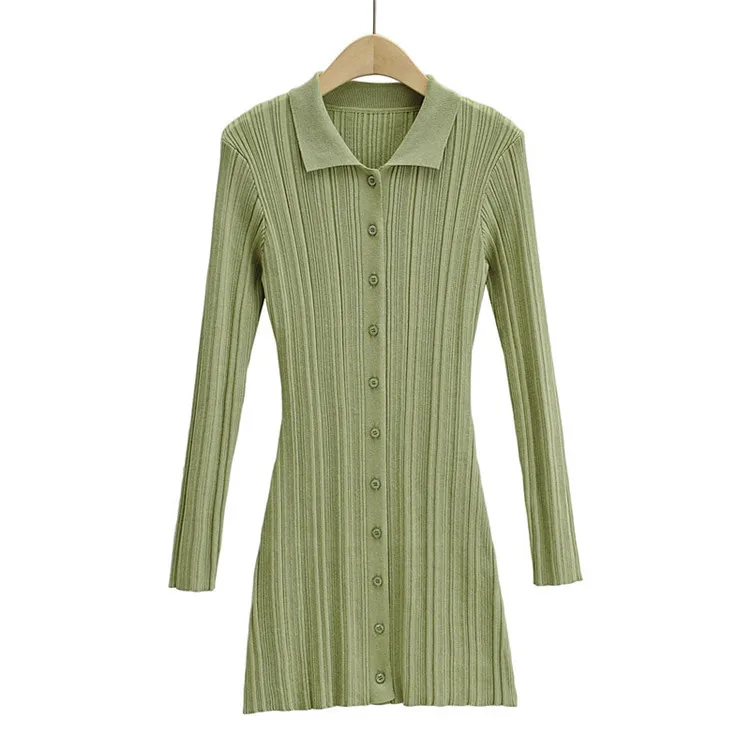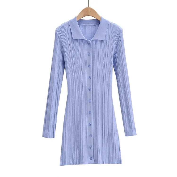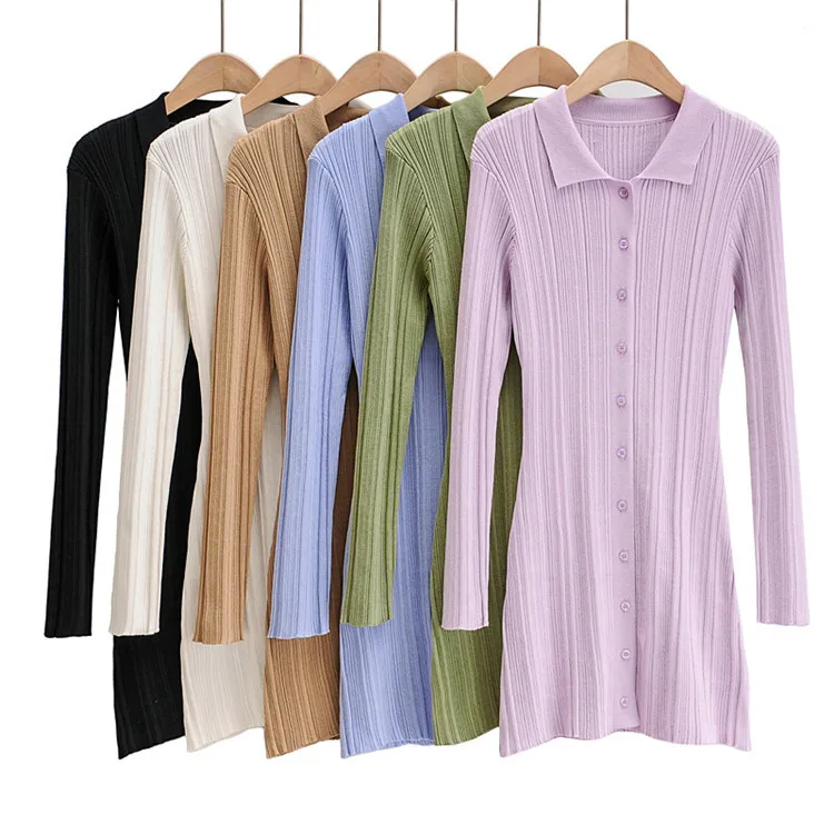Wholesale New Fashion Ribbed Long Sleeve Women Summer Knitted Bodycon Dress
