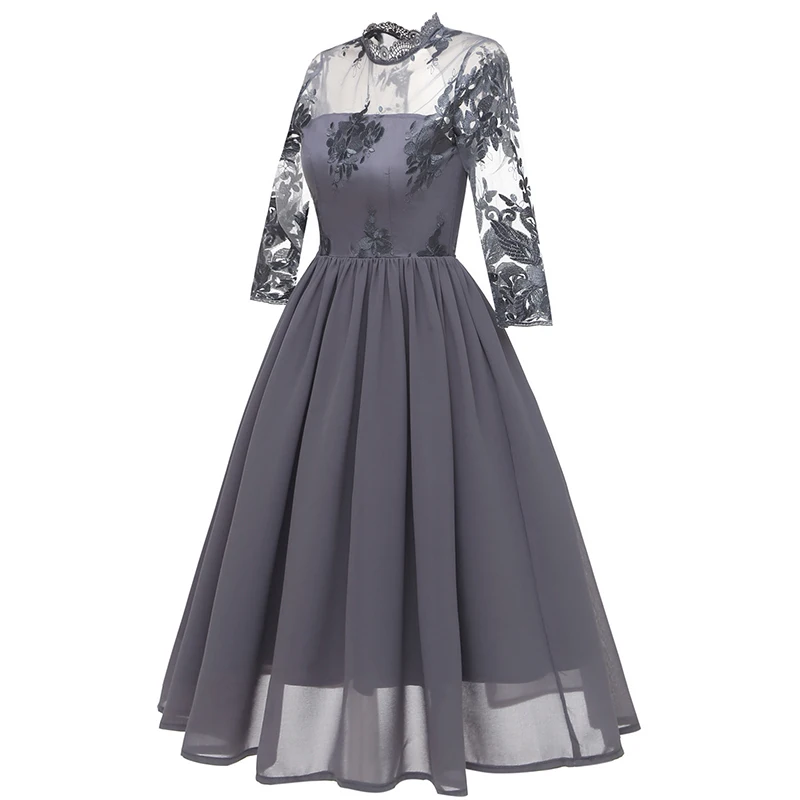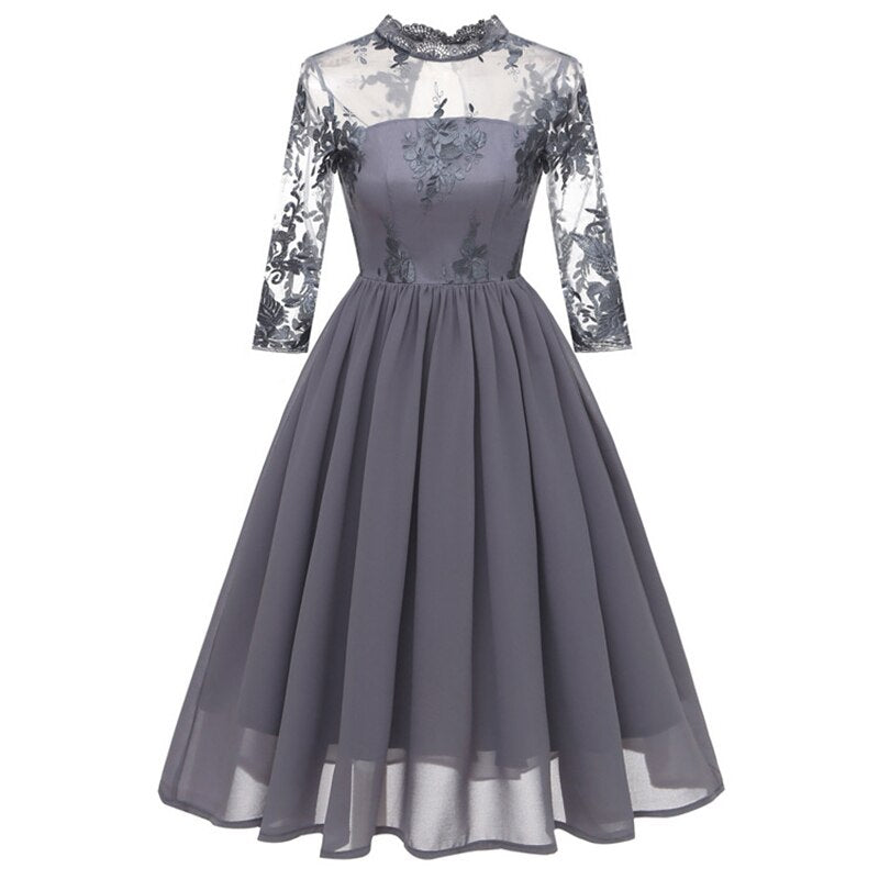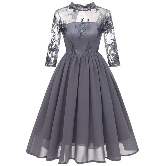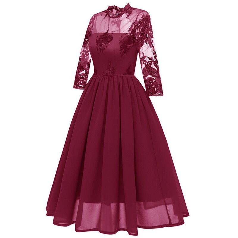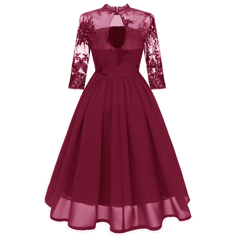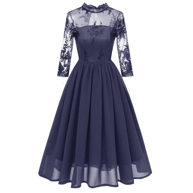 Women's Lace Chiffon Vintage Dress Long Wedding Evening Ball Gown