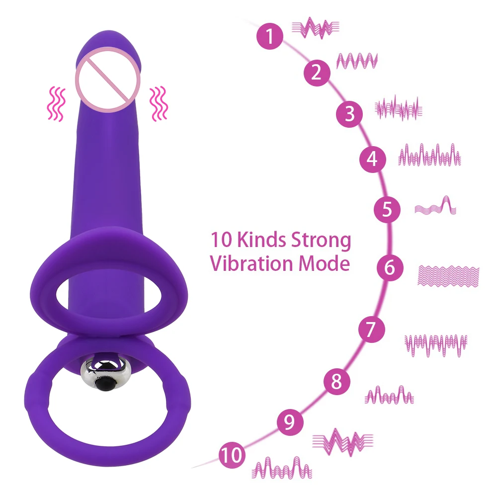 IKOKY Strap-on Dildo Vibrator Anal Butt Plug für Mann Double Penetration Vibrator Mit Ringe 10 Speed Silikon